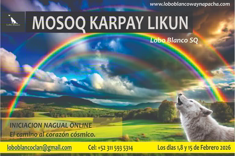Lobo Blanco Wayne Pacha, enseña a descubrir un caminó más allá de este mundo, a conectarte contigo mismo, tu ser de luz , tu no recuerdas nada antes de nacer, por un velo que te hace olvidar, y no te permite recordar que paso antes de donde vienes , que eres, quien eres, más tu luz interna quien tiene todos los recuerdos te los trae, es esta luz a quien llama Chasca o estrella, también le dicen nawal, tu animal de poder, en muchas culturas también lo conocen con diferentes nombres, Tótem los indios americanos, los Inkas también tenían su animal de poder y eran divididos cada persona según su animal en un suyo, en otras culturas Chirichiri, Aumacua y demás nombres, te hace recordar toda la verdad desde el principio de tu creación, así cómo enseñó Jesús el Cristo, yo os enviaré al Espíritu Santo en cual les hará recordar y les enseñará la verdad de todas las cosas, entonces es éste Espíritu Santo qué nos hace recordar todo desde el principio y nos enseña un caminó, a vivir en perdón en bendición, muchas culturas lo conocían con otros nombres pero era el mismo Espíritu, por eso muchos sacerdotes tenían mucho conocimiento y sabiduria, éste caminó descubres cuando encuentras a tu animal interno , tu luz tu estrella o chasca en quechua, vive en perdón en bendición sigue la verdad que te hace recordar el Espíritu Santo y sigue tu evolución tu progresó de eternidad en eternidad, no te quedes atrapado sigue tu Luz interior sigue el amor incondicional el Quyai, vive en Perdón, vive en Bendición inspirado por el Espíritu Santo, tu Luz interior , tu Chasca o estrella, vive en la Luz, cambia tu vida cómo tu lo deseas en armonía con el causay, en armonía con la creación, con la fuente vive en la armonía, vive en la paz, vive en el amor, vive en los frutos del Espíritu Santo.